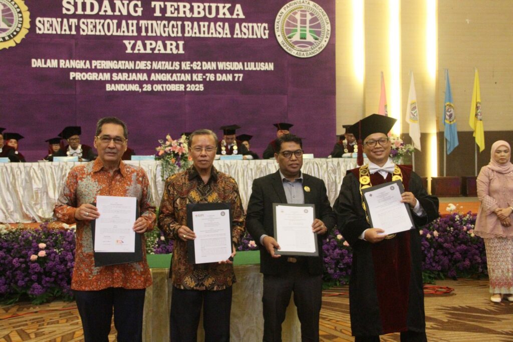 Sebanyak 138 wisudawan dari empat prodi mengikuti prosesi wisuda dan kegiatan dies natalis STBA Yapari di Balai Sartika Convention Hall, pada Selasa, 28 Oktober 2025.