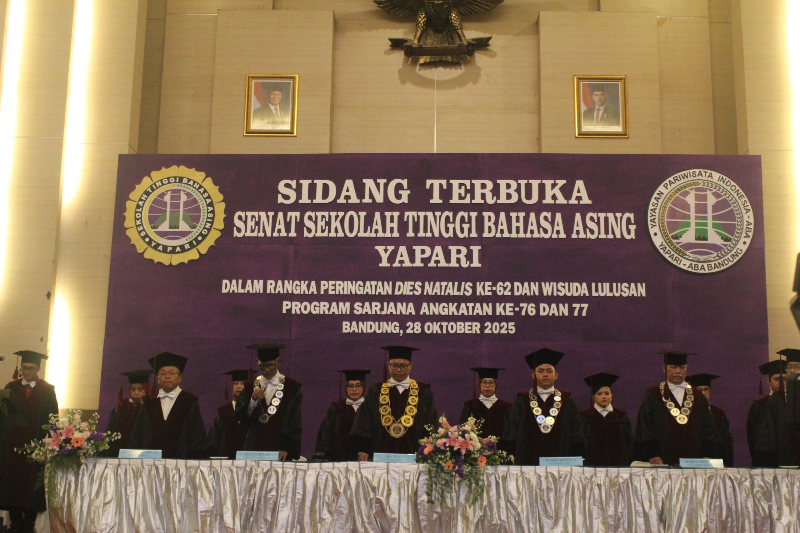 Sebanyak 138 wisudawan dari empat prodi mengikuti prosesi wisuda dan kegiatan dies natalis STBA Yapari di Balai Sartika Convention Hall, pada Selasa, 28 Oktober 2025.